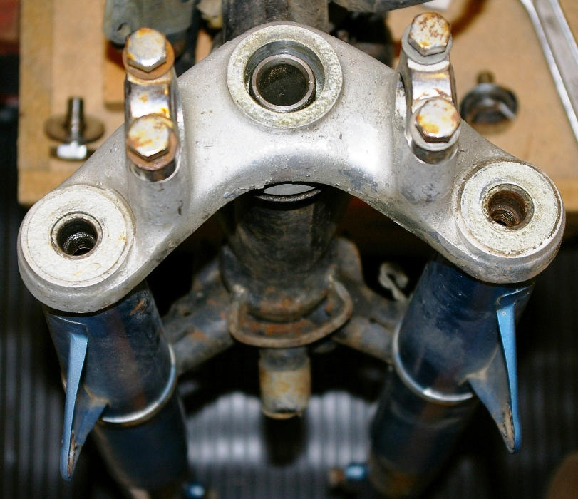 I was surprised there was no packing between the bridge and the upper fork covers. A look at the Handle and Steering Stem fiches shows something there, but no dimensions for them in the parts list.