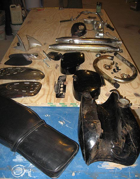 the paint was all redone in gloss black BC/CC urethane. nothing was rechromed, just thoroughly cleaned. disassemble, clean, polish, paint and reassemble was really the bulk of what i did. replaced all the cables as well. rebuilt the carbs. it's been so long. reading my old posts i can see that i have too.