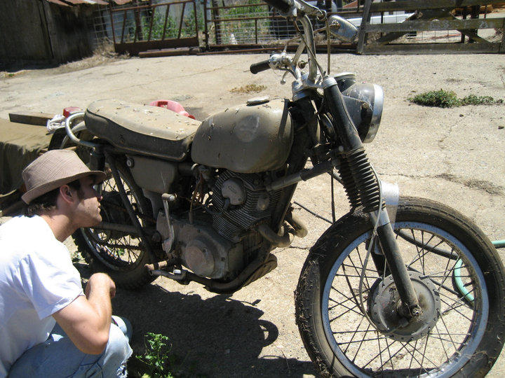 i've been coming to this website and finding some great information for the past week, so i thought i'd share the new bike in my life. It was my grandpa's bike which he recently gave to me (thanks again gramps) 2,300 miles on it and most of it is there. He shaved off the emblems waaaay back in 69 :( when it was last registered, after which it sat in a garage for 20+ years then out in a barn for the last 5 years. So needless to say she got a little dirty.