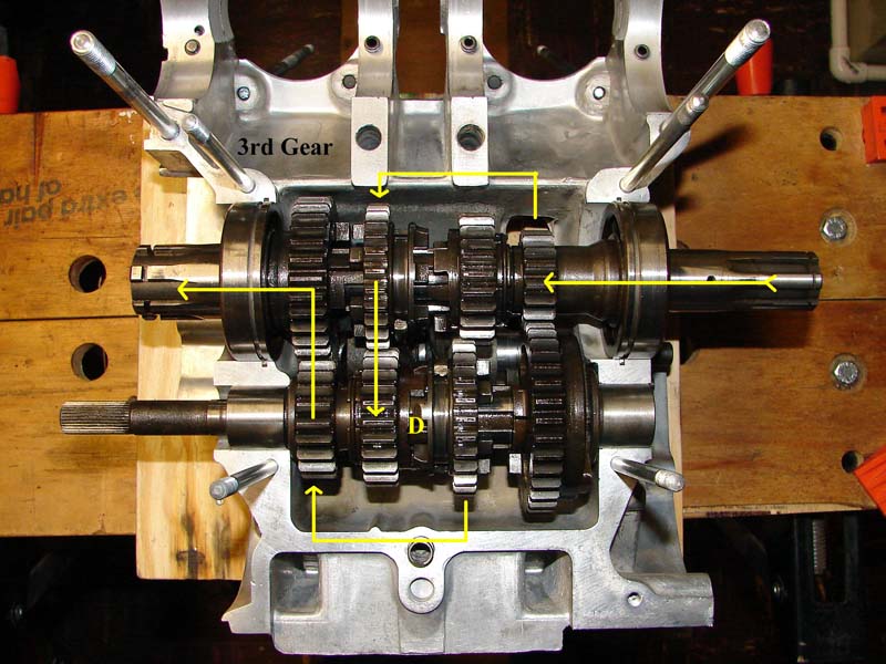 Before I got into refreshing my motor/transmission this winter I had looked thru a number of the postings here showing pictures and drawings of the transmission but I never really got a handle on just how the power was routed thru the gears. Now that I got into my transmission and see whats connected to what it finally makes sense. Just in case there are other newbies out there I thought I'd post the photos of the power train for the various gears.