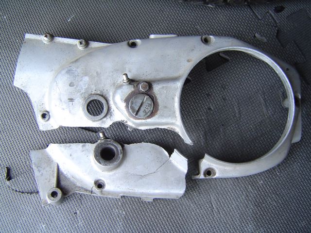 Right side cover, broke off when the bike came to a abrupt stop with cracking noises coming from motor.  Obvious now.