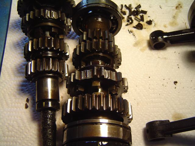 On the Counter Shaft, 2nd gear had 5 teeth misshing and 3rd gear had severe wear/friction damage on a couple of the gear teeth.