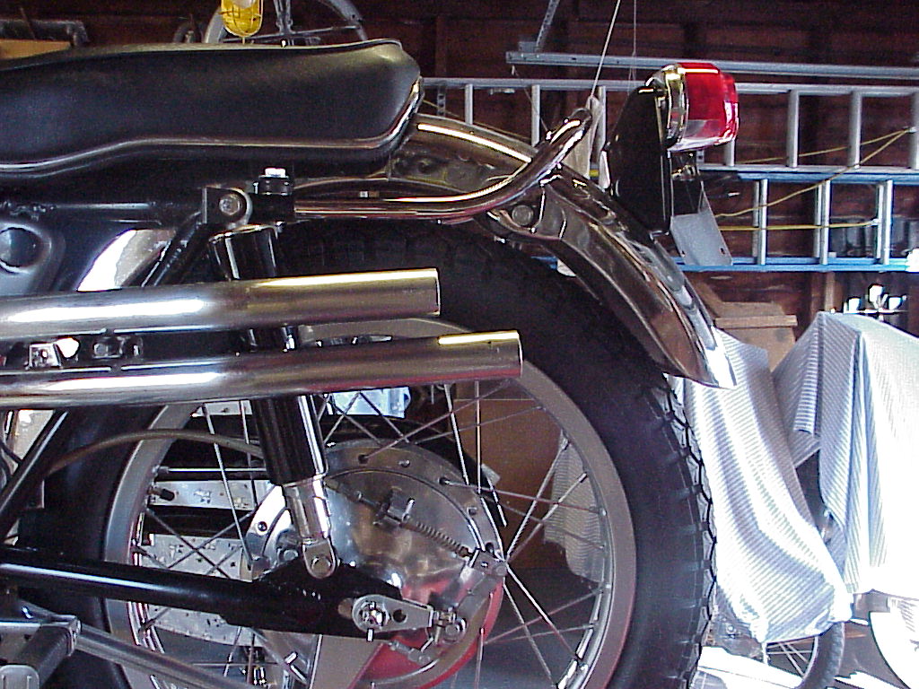 The original exhaust on my '67 CL is in great shape, with the exception that a previous owner sawed the end off the muffler and yanked out the baffles. Needless to say, it was loud. I found a set of pipes off a '66 that were decent and the price was right so I got those with the intention of putting either a '66 repro muffler on them or maybe a set of the EMGO 12 inch shorties that look like the old Bate's Shorties.