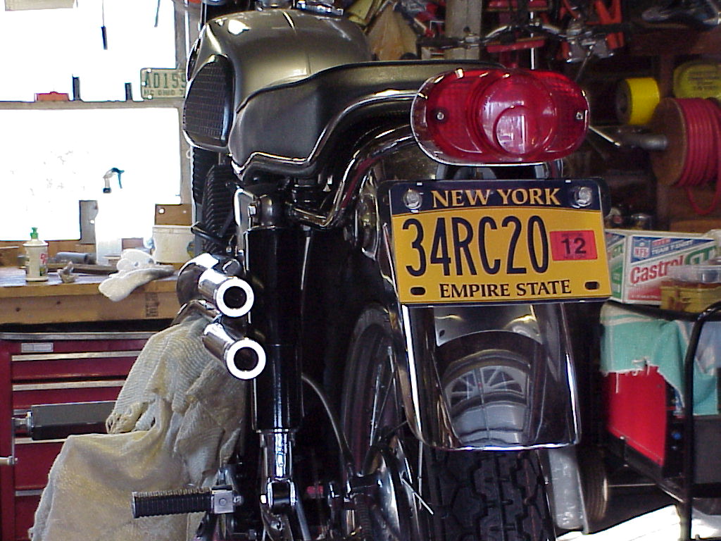 The guy I bought the pipes from had a restored '66 and he used an old trick from when the bikes were new. He put a pair of old VW chrome exhaust tips from the original Beetle in his pipes. They are a perfect fit and just need a screw on the back side to hold them in place. So I thought I'd go that route because it's a nice clean look. But when I went to buy the exhaust tips (which you could buy in K-mart in the early 70's) I could only find them on-line and locally in two auto parts houses, NAPA and BAP-GEON. Both stores carried the same tips, which are made in Brazil and are garbage. Plus they are now between $14 and $17 each, so not a cheap alternative. I looked for NOS on ebay and found a set, but they were from different engine sizes meaning the ID was different on each one.