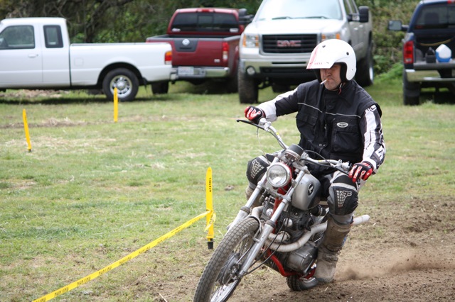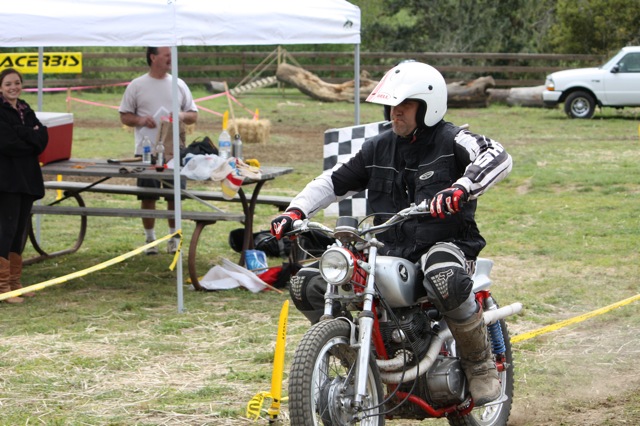 We had a Motocross race at our Club this weekend, and our first vintage race. There were only two of us, as the BSA wouldn't start. I went for the period helmet, and Steve McQueen smoke dangling from my mouth. While I did pull the holeshot both Motos, the Can Am was to much for the non knobbied CL ! Really made me appreciate the YZ250F!