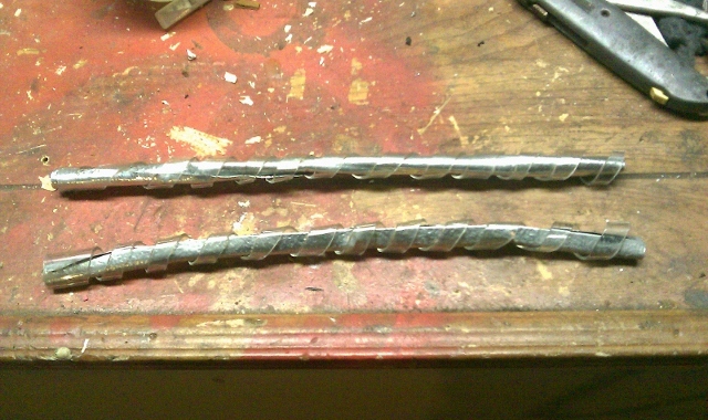 Well, Been trying them on a Honda Shadow VT500c 1984. There's a Baffle in the damned tank! I can't get the left side to lay in the tank properly. Plus getting past that baffle. GRRRR!!! For thouse of you wondering, see the thread about electrolisys on metal parts for a zinc coating at home. Search for sugar or zinc or electroplating. The discussion goes though about how to do the inside of a tank. The Milkstone remover really worked well on eleminating the rust inside the tank however, it flash rusts surfaces inside in a very short time! So it's important to have things ready to go! The sticks you see here are made of zinc roofing strips. They are wrapped in plastic tubing cut up with a spiral effect. The plastic is to keep the sinc from making contact to the tank metal. The spirial is so you can move them around inside the tank because electroplating is line of sight. To get a good coverage you have to move these around to get all the surfaces. Should work like a dream inside a Dream tank. If anyone does a Dream Tank before me, I would appreciate some photos.