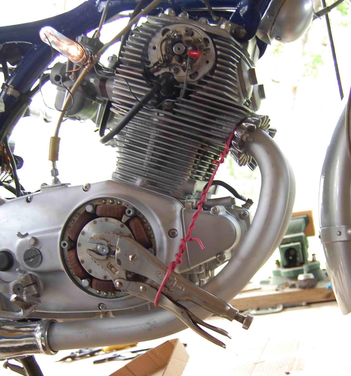 Doing this for first time, following instructions in owner's manual. When i try to line up the right side timing mark (by rotating the rear wheel forward in third gear) i can't get the rotor to stop. i just wants to rotate past the mark and stop after an inch or so of travel. feels like the crank weight is pulling it. i have actually had to use a wrench to hold the rotor in place. can anyone help me understand what's going on?