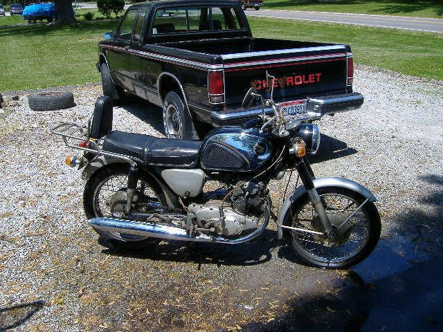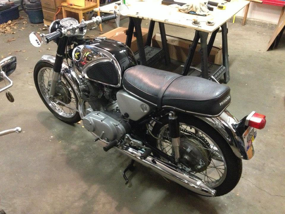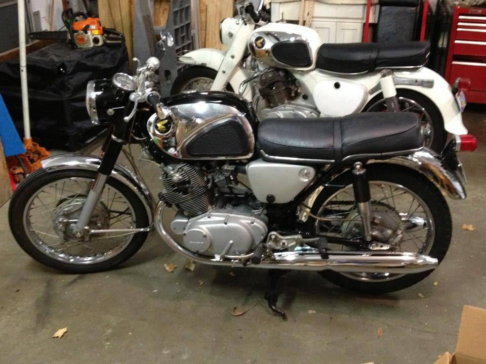 This is a photo of the CB77. I aquired this for $200 while shopping for parts for my CA77 which still also have. When I first bought it I got it running but then stored if or 10 years while my kids were little. A few years ago I was thinking about selling my bikes but my wife convinced me to keep them and fix them up. (yes you heard that right)