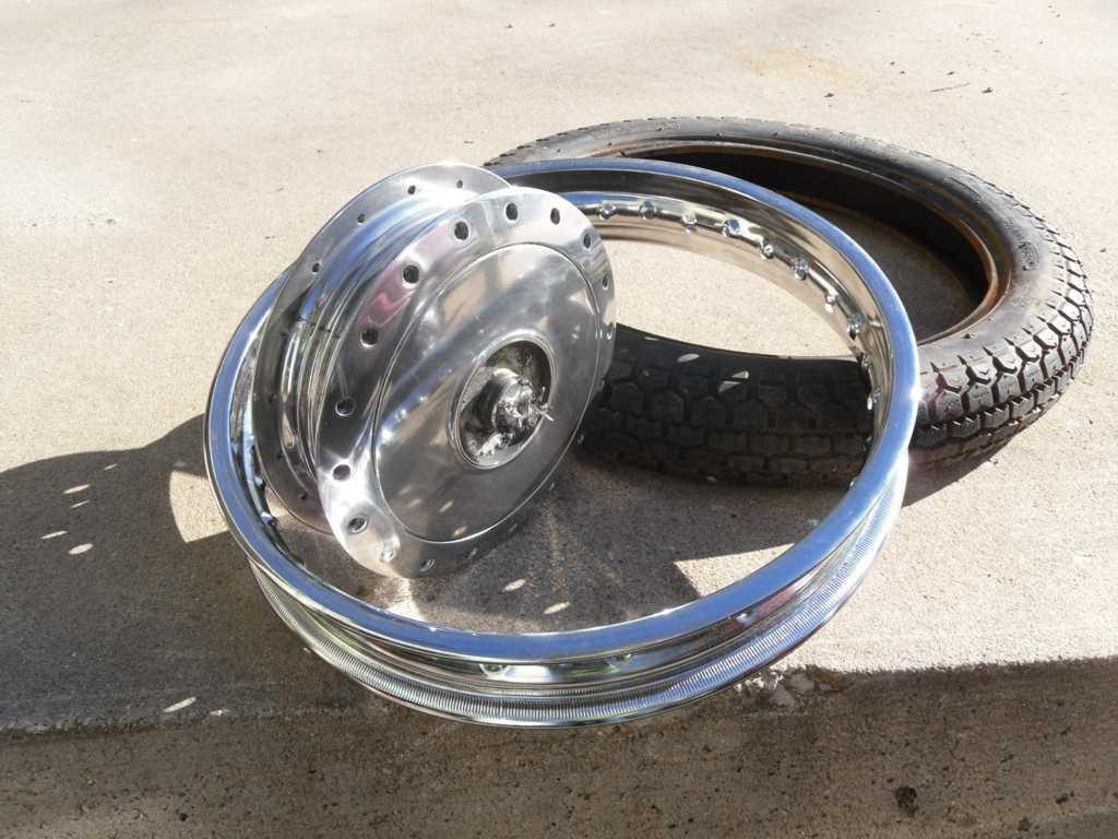 Just finished polishing the front hub and got two new rims and chrome spokes and nipples. Now to find a tire.
