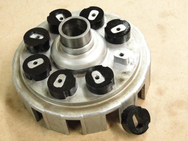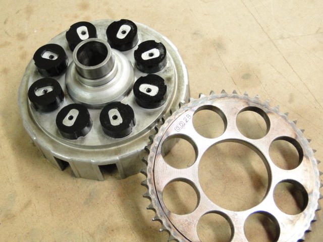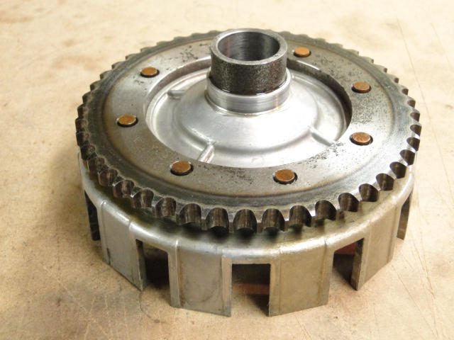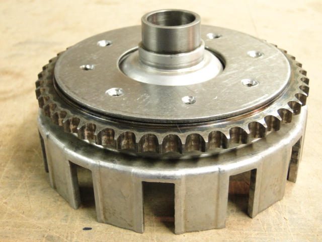 Here's the earlier clutch outer. Pretty sure no "cush" in there... This clutch was set up with 6 disks and worked fine. Sprocket is tight.