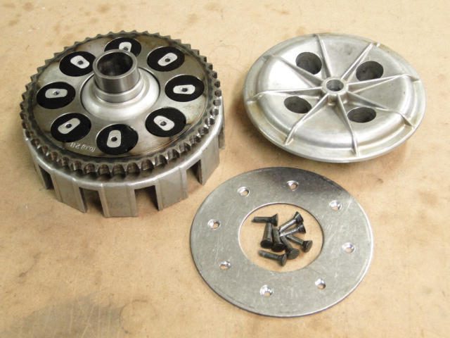 48lesco wrote:Here's the earlier clutch outer. Pretty sure no "cush" in there... This clutch was set up with 6 disks and worked fine. Sprocket is tight.