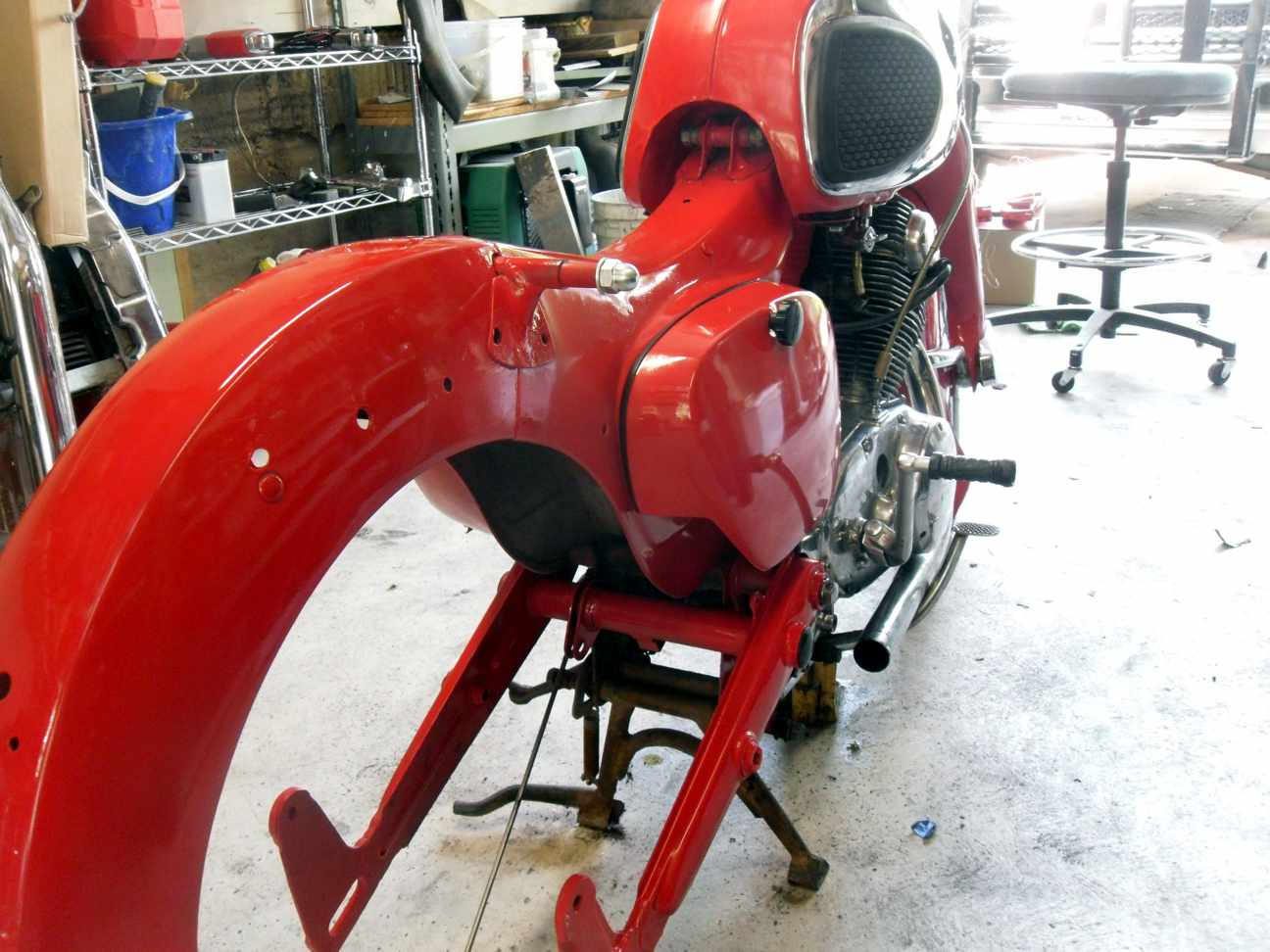 Paints done - a few minor touch ups to do - New front and rear wheels, spokes and tires. Now comes the hard part - assembling the rest of it and the eternal chase for misc. hardware