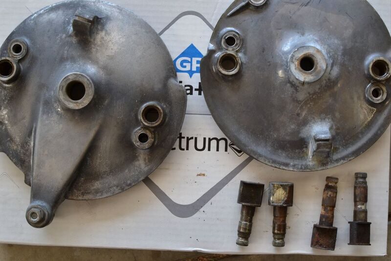 A couple of weeks ago I purchased a 1965 CB77 that looks like it had probably been leaning up against a barn for the past 40 years. Perfect and I love it. I have rebuilt a few bikes over the years but never to this extent. I have disassembled and bagged and tagged almost everything. There is still a lot that I don't know that I don't know. I have taken the jugs and pistons to the machine shop and I'm awaiting the verdict. Right now I'm just working on a little here and a little there. No real plan yet except research and keep the UPS guy busy delivering parts. One success to report. With some Deep Creep, heat, and a large mallet I got the brake cams out front and back. The hubs look terrible. I would appreciate any suggestions you might have to make them look more presentable. Should I paint them? How critical is it to use the exact washer on the end of the oil filler shaft? Part number 15493-259-000. I am on a fixed income now and don't know how many $30.00 washers I can throw at this bike.