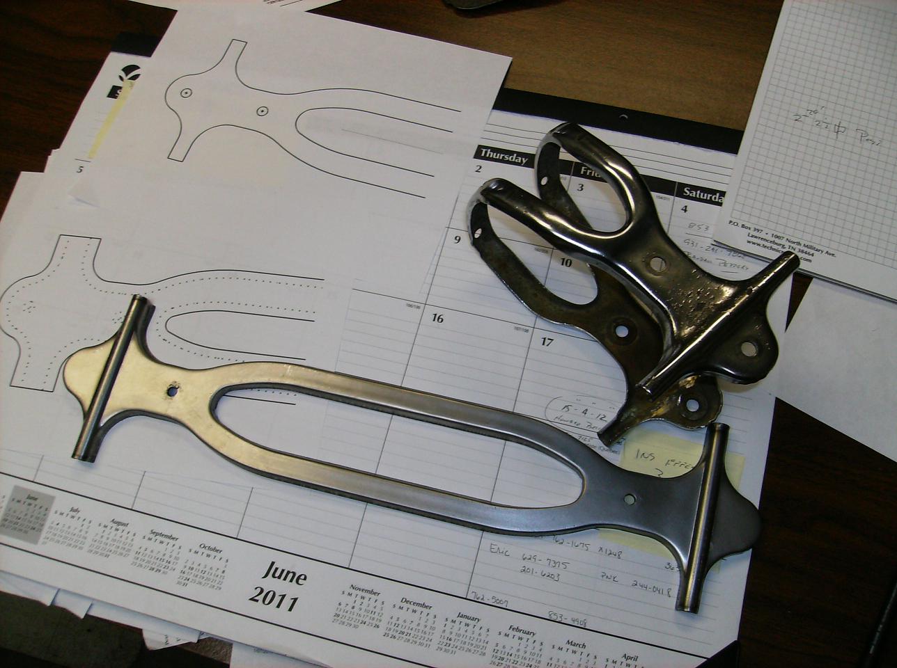 We got a little caught up here in the shop this week, so I got to work on something thats been on the back burner for a while. We've been building the fenders for the Harley Hummers for about 10 years and finished up all the models back in the fall. Our fender rolling machine is tooled up for the CL fronts now. We're still in the process of getting the bugs worked out of the wired edge. Today we machined the first form die for the early (steel leg) bracket and hit a part to check the blank size. I'm gonna have to make a few adjustments so that we can get the pattern out to the lazer guys. Thought I'd post a couple of pictures of the progress in hope of getting a little feedback.