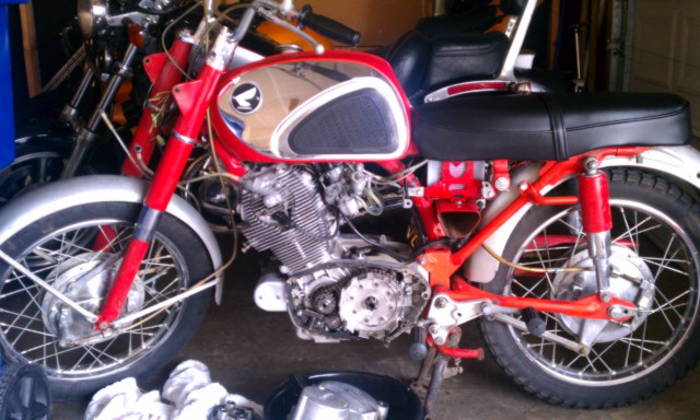 Finally had some time this weekend to disassemble my CB77. I have decided to go with the red again. Maia's bike inspired me. Here's where I'm at.http://farm8.staticflickr.com/7017/6502 ... 768f89.jpg