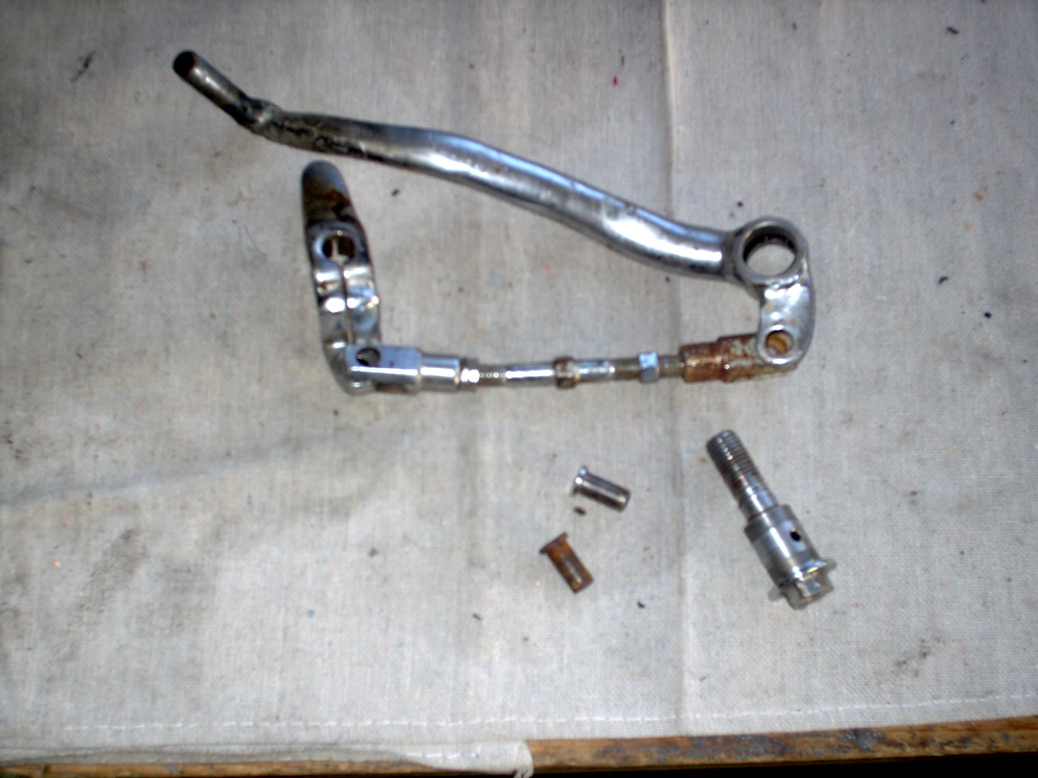 Hi, So I've been working on getting my new CB project wrapped up. The only things I really need to do that I'm having trouble with is my rear-sets. When I got the bike the set that was on it was not original and was set up totally incorrectly. The shift lever was not for this bike and will not work if it is set up the correct way. The splined shifting arm was tack-welded to the shift shaft. I have since replaced the shifting mechanism for one with good splines. I now need to return to an original(ish) rear-set configuration. I have looked on e-bay and there have not been any rear-set components for some time now. Has anyone here made any modifications or have any ideas for my rear-set catastrophe?