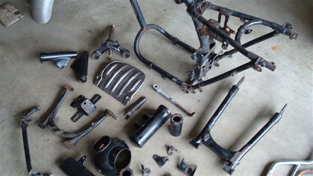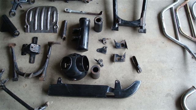 Well, I purchased this bike two years ago, took it all apart about a year ago now, and finally I am getting a good start on the restoration part of it. Over the two years I have bought parts I needed--front rim, front fender and stay, swapped a chain guard, bought all the rubber parts, etc. Anyway, early next week all of the black is going to go to the Powdercoater.