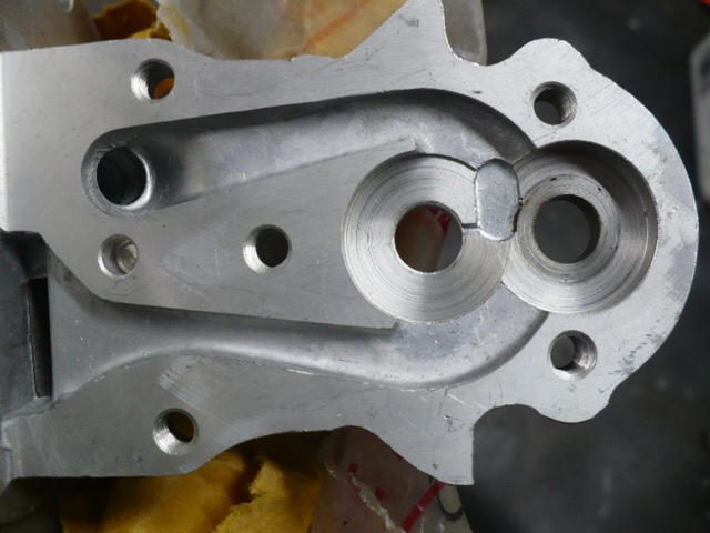 This first picture shows the housing and the groves that have been gouged into the metal by foreign material that got sucked into the pump. Look at the top gear cavity in this picture especially. You can see the groves there. These groves degrade the pressure of your pump and this in turn starves your engine of oil in some of the most critical areas.