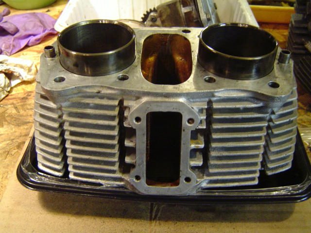 Since then, I have taken the engine/tranny completely apart, cleaned the cylinder, cylinder head, split case and many of the internal parts. Here is a short list of what I have done in the last two weekends. Again, the engine in the bike has been restored once before in the lat 70's.