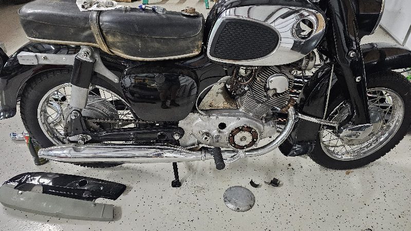 After several house moves, a bunch of life changes, etc I finally dug stuff out of boxes and started reassembling again. I got the bike together and rode it around. Clutch, brakes, shifting, etc .. all good. Now comes the detail work. The bike came with some janky exhaust tips (probably from jc Whitney) and I'm working on putting correct mufflers on. I still have some bits to paint, things to polish, etc.. but I'm over the hurdle of getting it free from cardboard boxes.