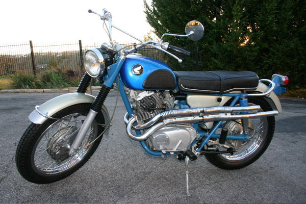 I bought my '66 Scrambler in 1992 from the second owner. He had purchased it from the original owner (a friend) in 1980. The original owner bought the bike in '67 while he lived in Phoenix, Az. and rode it in the desert. He dropped it a couple of times and damaged the tank, headlight assembly and broke the clutch lever. He rode it for 842 miles and then parked after the second fall and never rode it again. He moved to Santa Clara Ca. and sold it to the second owner who was going through a divorce and used the bike as "therapy". He dissasembled it and repainted from red to medium blue and cut the muffler off. He also painted the wiring harness and cables black along with the cylinders and head. He found a girlfriend and the bike languished 80% assembled. It went with him when he was transfered to Minnisota (not sure about the girlfriend) and to Portland Or. where I bought it from him in '92 for $300.