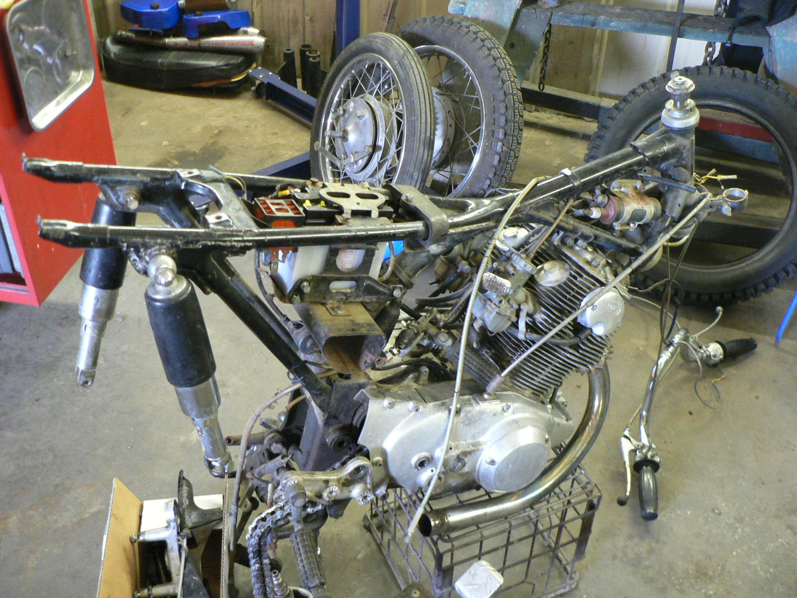 AWILLIAMS64 wrote:I am not quite sure how to take this. Are you saying to just try to figure out the type and amount of fluid i need by trial and error? I am definitely doing all of this myself w/ the help of members of this board. It seems maybe when you started to working on the bikes that the manuals and parts books were more readily available? I am definitely not trying to bash you in any way. You seem to be the most knowledgable person on this forum about these bikes. This is my first bike "semi restore" and on a limited budget is is sometimes hard to just try different things and parts w/o knowing if they are going to work right. I am a member of a few other forums and they happen to be in the way of the fields that i know a thing or two about and i help as many people as i can, just as you do. I ask questions not to have someone do the work for me but to double check what i have tried to learn/read/figure out myself. Just to let you see i am trying to do this, here is a picture of what i have so far. i have taken it the rest of the way apart and have it masked at this time, ready to shoot the frame