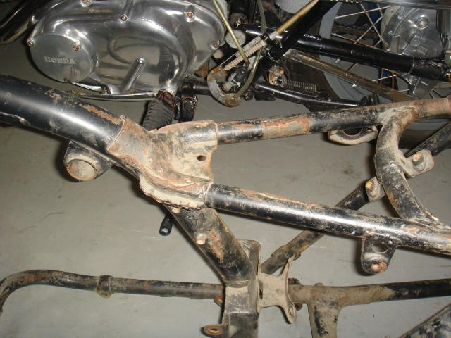 This is what I have. It looks like I need to weld a battery box back onto the frame as well as the seat mount. The rest of the frame looks OK except for the stop switch bracket. It is worth fixing.