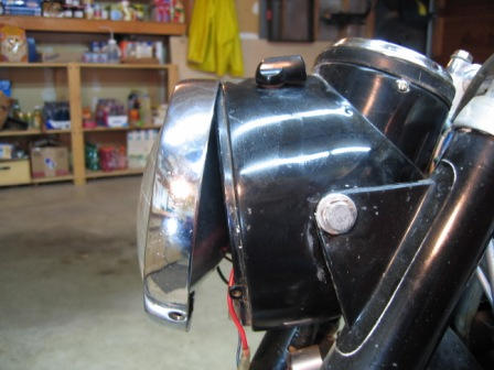 OK guys, I have a real juicy electrical gremlin problem to sink your teeth into. 1963 CB77, replaced the headlamp. Also replaced the dimmer switch with a used switch off eBay. With all the wiring connected, and with the headlight assembly laying on the front fender lamp side down and backside wiring facing up, everything works fine. With the headlight switch in middle position, main switch on, only the neutral light is on. So far so good. Switching the headlight switch clockwise, now the headlight is on and I can toggle between high beam and low beam with the dimmer switch. Speedo lamp is on also. Again, no problem so far. With headlight switch at far counter-clockwise position, taillight and speedo and neutral lamps are on, with no headlight as expected. Still everything's OK. Now, here's the good part...I pick up the headlight assembly and hang it from the headlight bucket. Turn main switch on, neutral lamp comes on. Normal. Then when I turn the headlight switch clockwise, the neutral lamp goes out. It's because I've blown the fuse. I've gone through about four fuses repeating this sequence of events. I'm guessing I have a short somewhere that doesn't manifest itself until I ground the headlight to the bucket. I don't see any exposed wires, and the pieces of electrical tape you see in the pics are just to cover the exposed metal parts of the electrical connectors, they are not the outcome of twisted wire cob-jobs. Based on the information I've provided, can someone point me in the right direction? Clearly I'm not an electrical expert, just a dangerous character with a multi-tester.