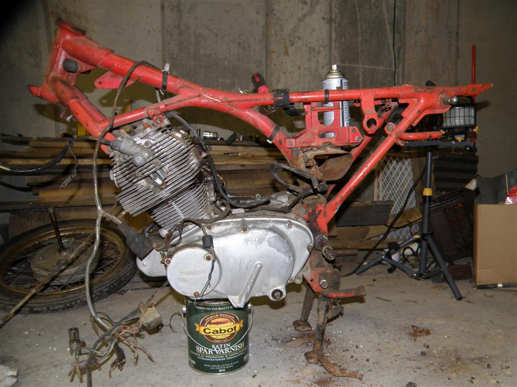 Thanks e3steve! I already have the tank off and alas the year tag on the harness is long gone. I have the bike down to the bare bones now and am removing the forks. It looks like someone had removed the front wheel in the past and put it back on backwards! Didn't even have the brakes hooked up or anything. I took pictures of all the wiring in the headlight before I cut it for removal so I have a record of what went where. The speedo cable wasn't attached nor were the light bulbs installed in the speedo so I am guessing that the speedo didn't work.