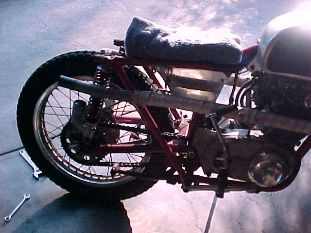 I also have a custom in the works. It's a very low mileage electric start, CA motor in a CL frame with an early swing arm. I won a pair of Koni shocks off Ebay that only need bolt collars. I welded a top engine hanger to the coil area (coil under seat) and I cut out the cradle tubes. All tabs and battery box are removed. I have a CB200 tank mounted and a flat track seat. The front end will be stock steel CL, low superbike bars and my custom disc brake hub with aluminum rim. The rear is a small hub with a 2.50 aluminum rim. I am doing the wire harness now. I am planning twin down exhaust, 2 into 1 with a centered supertrapp under the motor. I'll keep you posted when things progress. I need to get a picture posted also. Scram64