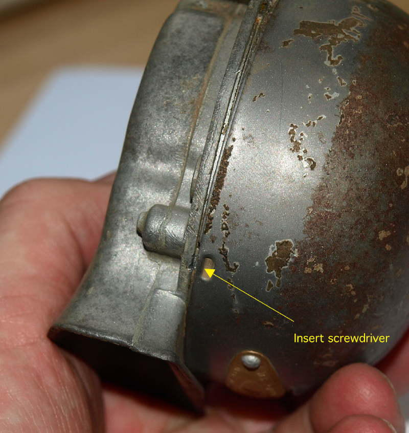 If you look where the domed cover meets the horn body you will see several dimples in the cover. At the joint face below the dimple there is a very slim slot. Push a thin flat screwdriver in the slot and you can pop the cover right off.