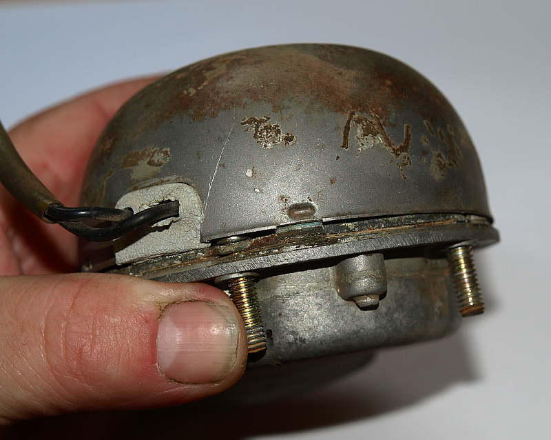 For the rectangular "grommet" on the horn dome that the two wires pass through, I've carved my own from a chunk of rubber (usually a section from an old automotive suspension bushing), Yes, the color is not the stock grey, but it keeps the contaminants out. This would really be a great item for someone to repro, but that's probably been hindered by no one being able to furnish a good sample, as they seem to decompose more than any other item on these bikes. If you do disassemble the horn, there is a thin gasket between the horn mechanism and the housing that does seem to help the volume, so try to preserve it. Regards, Chase