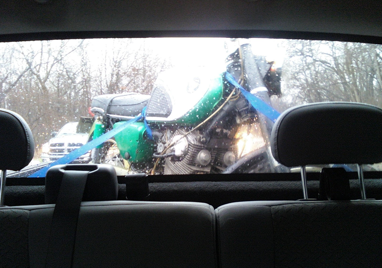 it started raining on the southwest side of the city as we loaded her onto the truck. traffic wasnt fun driving east on 290...some guy was holding up cars in the lane next to me and gave shelly thumbs up!