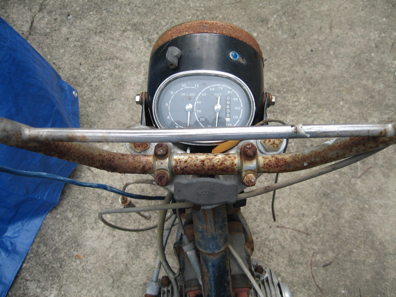 ed sent me a carb slow jet and i got the engine running with minimal attention to the ignition system. i was using a car battery to jump start the bike and i started tearing the bike down for brightwork/paint.
