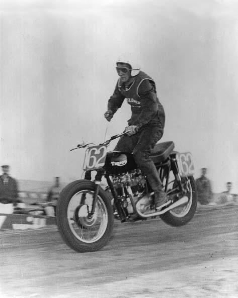 A bit of a stretch (pun intended).... here's a shot I love of Skip Van Leeuwen when he was a novice around 1960 TT racing at Ascot with a broken throttle cable. He had a big lead when it broke and was able to finish and win pulling on the broken end of the cable! He and Eddie Mulder were West Coast pro TT specialists that used to give the factory guys fits at the National TT's in the 60's.