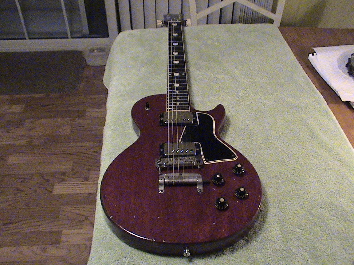 The guitar is a 54 or 55 Les Paul Special, and is being returned to it's original shape now.
