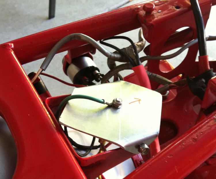 My version: heat sink is a square of Aluminum with the corners bent and drilled so it mounts in the original spot. This provides 2 points of ground, a tad more cooling, and easy access. Rectifier is mounted upside down. If I need more cooling, I can easily add a small fan to the top.