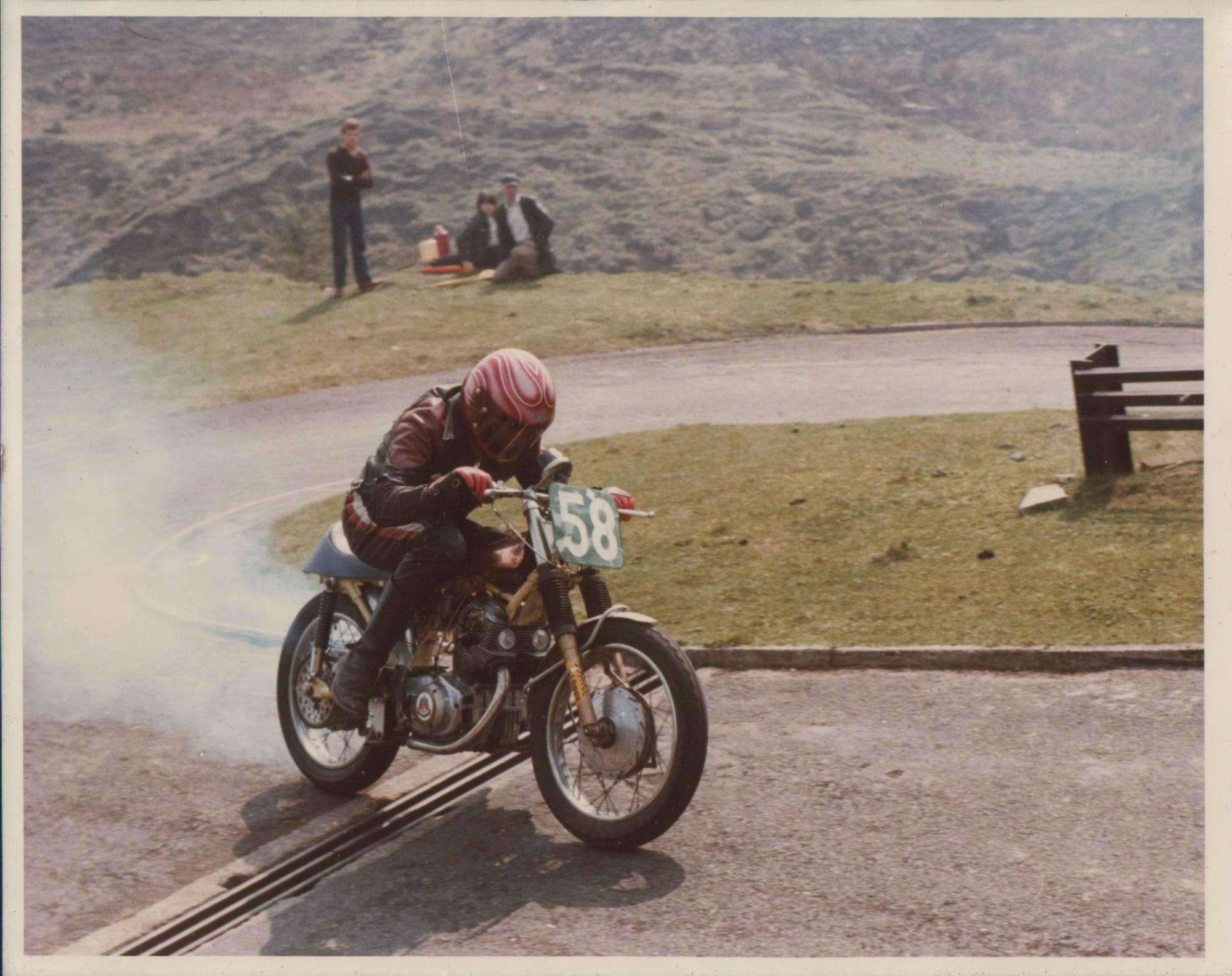 Here's me ..! Back in 1980 Speed Hill Climbing my modified CB72 at 'Baitings Dam' West Yorkshire. UK. Fuelled by Methanol and lubrication by Castrol R. Modifications to motor include High Comp pistons, Race Cam and CB77 carbs fitted with Amal methanol needles and large jets. Homemade fuel tank fabricated from a domestic hot water tank. Was it really over 26 years ago ? I've still got the bike though !!. Ian Hainsworth
