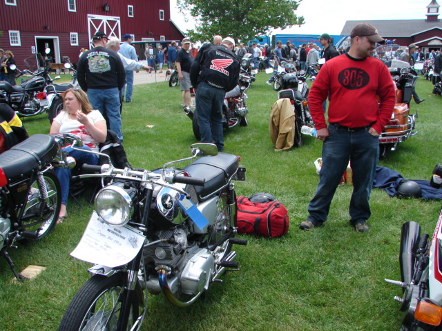 Just a couple of pic here from the Gilmore show today. Son Andrew and I had a great time, and a good visit with Shanepeeler and Goodysnap. I attach a pic of Goodysnap and his ride, and of Shane admiring a (non 305) Honda.