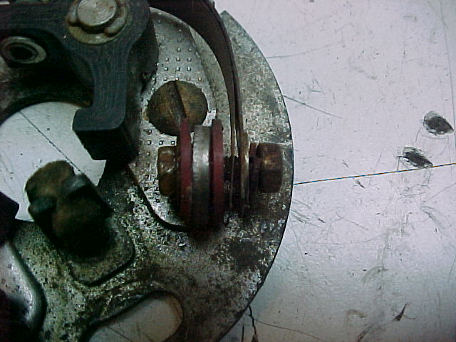 In the pic, you can see where the washers should be, the wire goes on the outside of the spring bands to the points.