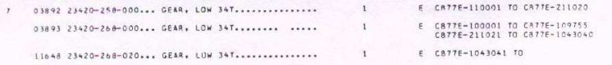 I added picture from a Honda Cb77 parts manual, there are 3 kinds of 34T low gear toothed pulley. My Superhawk is from 1964 and engine number is Cb77E-1054900. I purchased the last 3rd pulley - 23420-268-020.