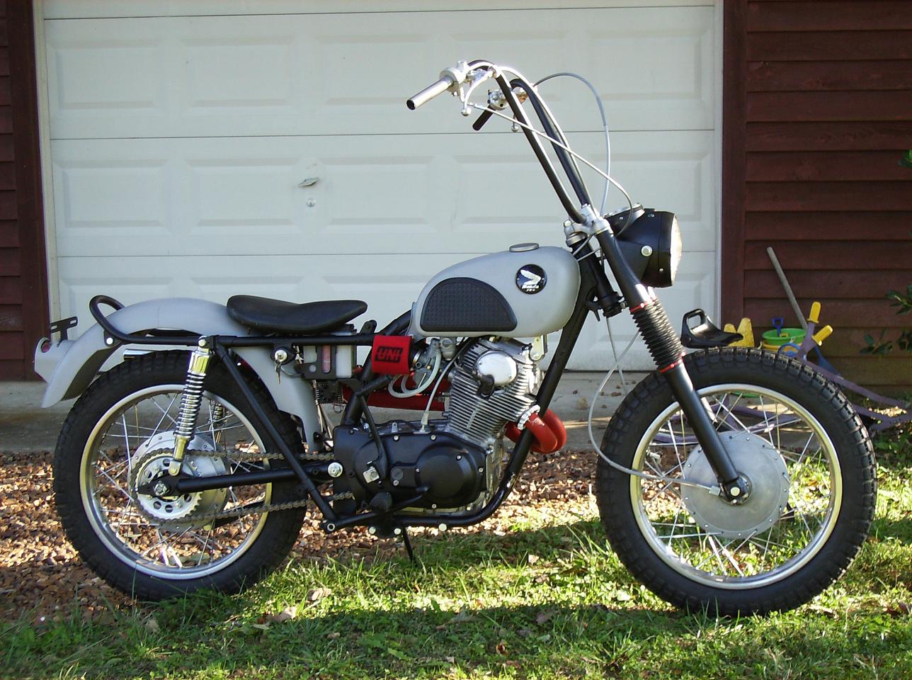 I had a bone stock White CB77 with bicycle ape hangers back in 71'. As a matter of fact, I put ape hangers on everything I rode when I was a kid. We lived in the same town as the Murray Bicycle plant. Used to go to the city dump where you sometimes would find literally thousands of tires, handlebars, wheels, frames, seats, cables, and you name it. I assume, back then they were bringing this stuff in from Asia for pennies and if there was an issue, off to the dump it'd go. It was like Christmas every two weeks when we took off the trash.