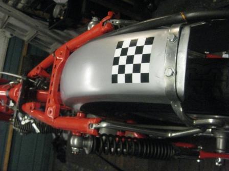 Hopefully attached are some pictures of the race kit type rear fender ( or should I say mudguard being in the UK ). The front mounts to the original "battery box", just where they always seem to be broken. I think you can get the overall shape from these.