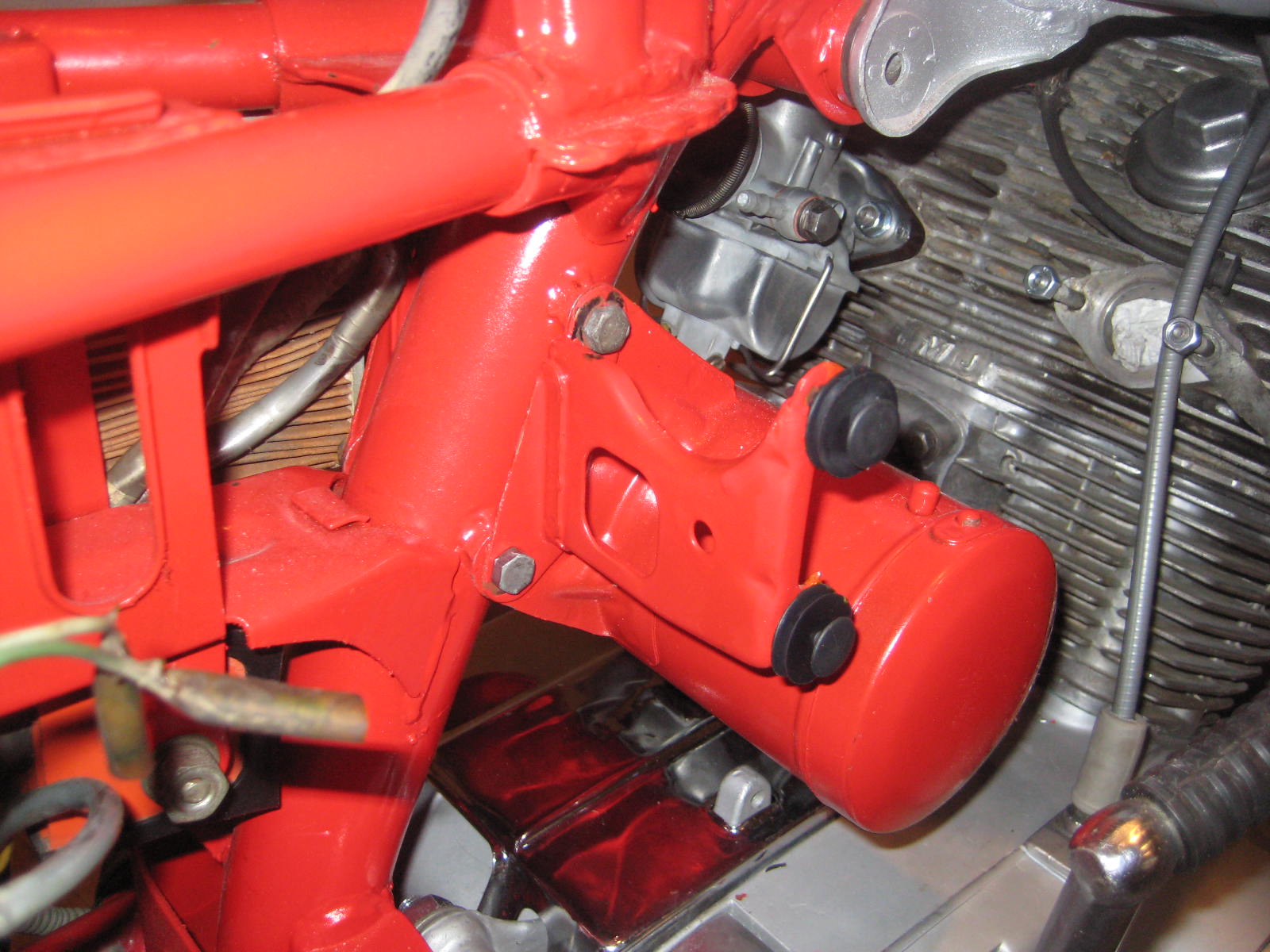 ...or another possibility which I opted for when I couldn't find a suitable bumper was to loop a short length of rubber fuel hose through the two bumper holes which can be adjusted to suit your specific need, and with the Scrambler, it gave the perfect tension to hold the side covers in place with no rattles, limp looks etc. and it was (and looks) cheap. Clearly 100% originality isn't my thing!