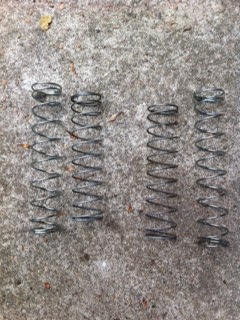 I went to Lowes and picked up these springs, which are the same diameter, but a bit longer.