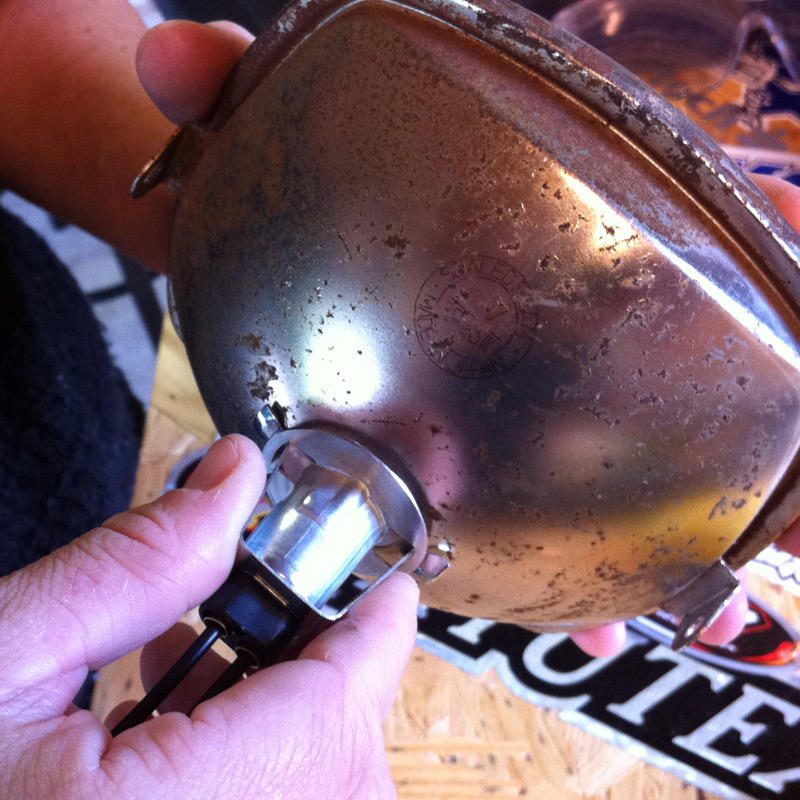 We found a good thread on fourwheelforum that walked us through a sealed beam headlight mod. So I found a 6volt bulb and socket and got it working for $7! Ha! We're gonna hold off on the 12volt upgrade for now and just go with hand signals.