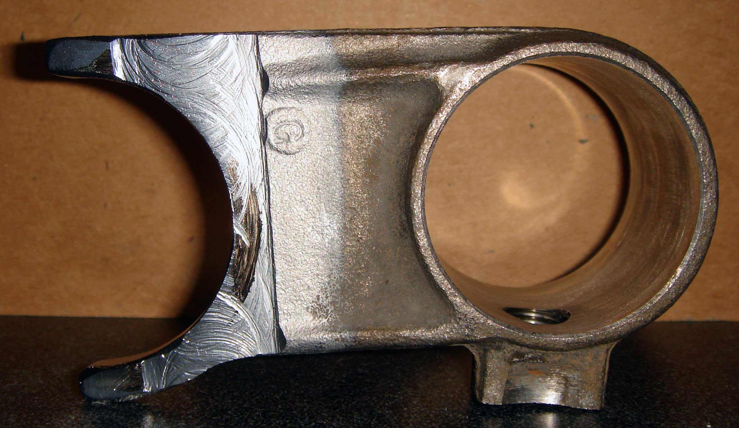 Pictures 4&6 are indeed the same fork, and there's only the tiniest bit of wear at the 3 discolored spots in picture 4 (not even enough wear to catch my thumbnail). Is there any way to recondition the other fork and the gear it mated with if galling is indeed a problem?