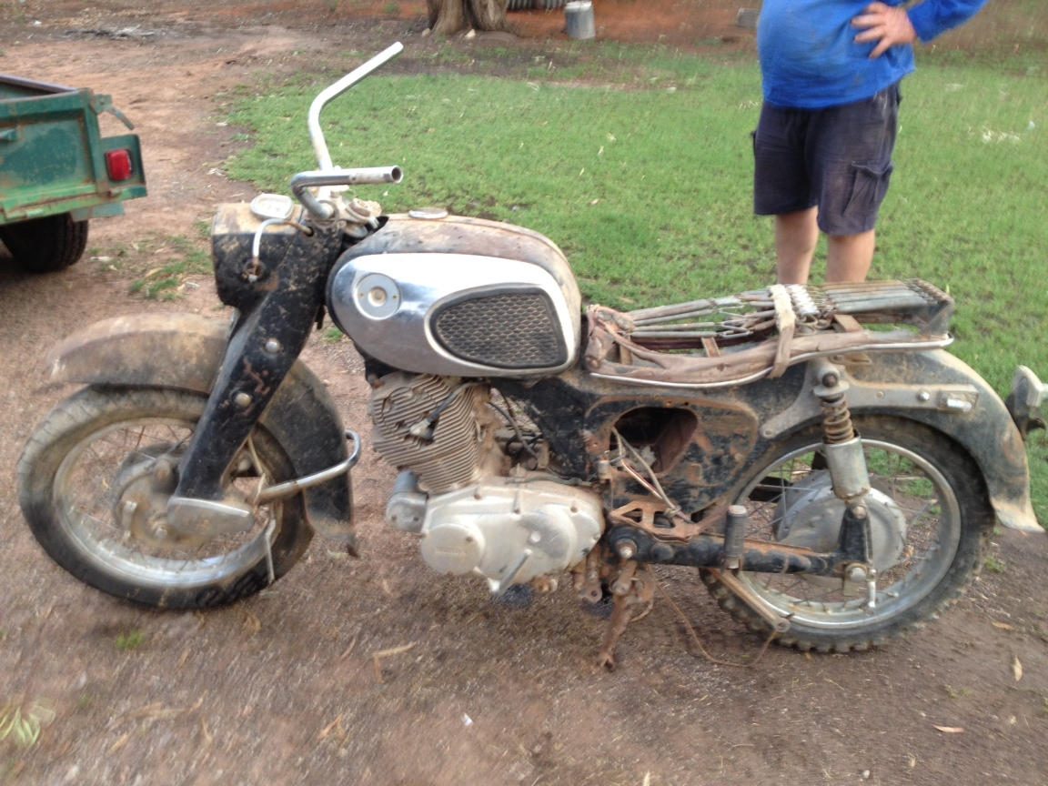 I'm a mechanic so I'd like to have a crack at the engine but the body work is a job for a professional. The bike is mostly complete but the original boxed handlebars have been flogged and I presume they will be hard to track down, but I'm excited to get it happening. I also have an almost complete C102 that was my grandmothers.