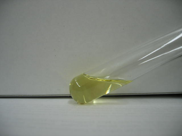 Got home, breather tube was steaming as usual. Now, however, I saw a small drip from the breather about every three seconds. I put a container under the drip and captured the fluid for forensic analysis. It is a clear yellow liquid that smells vaguely of gas but undoubtedly diluted. The photo shows the fluid in a vial...this was the amount captured in about two minutes of idling.