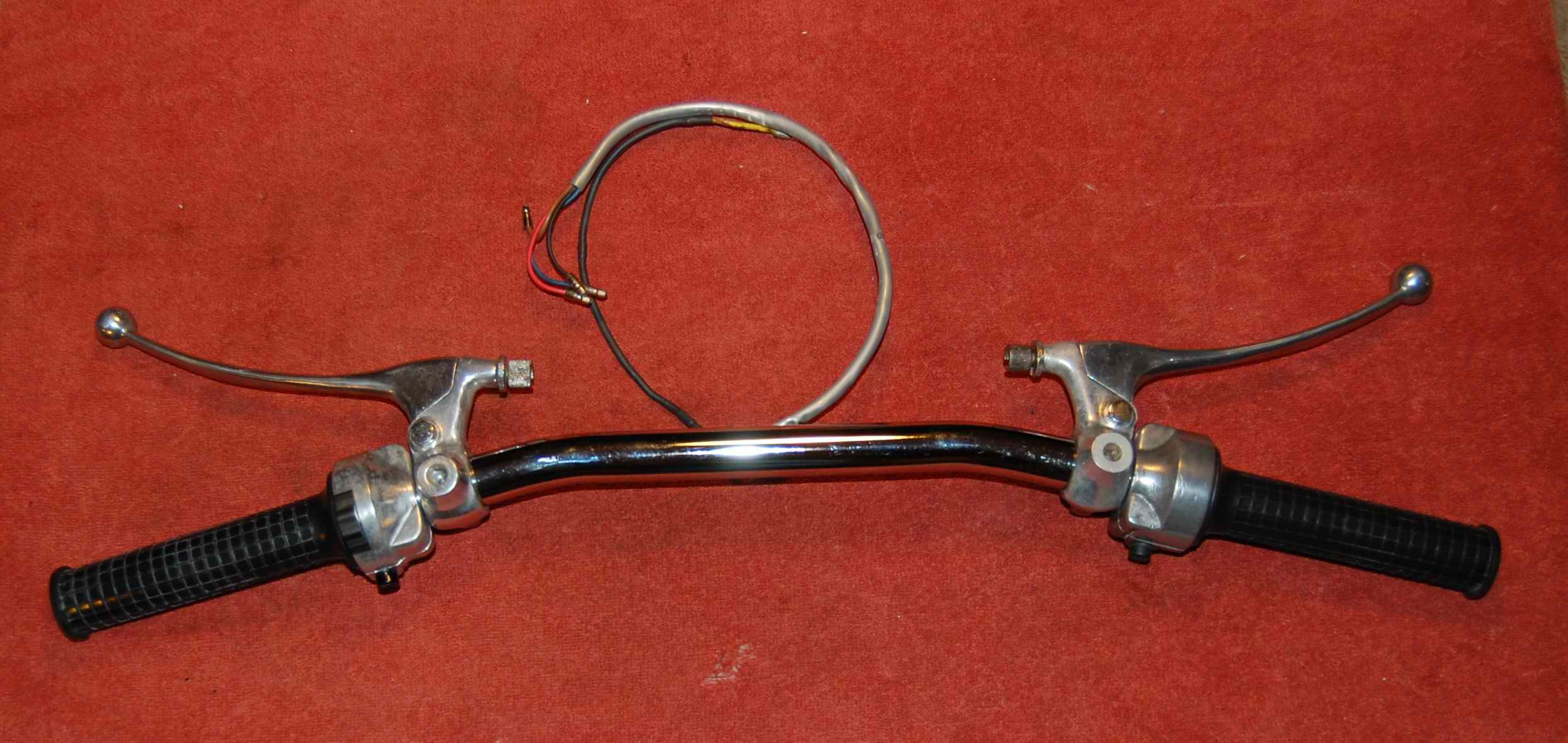Headlight switch. Three steering stem races and a bunch of ball bearings to replace ones lost when I removed steering stem without knowing what I was doing. New front and rear drive sprockets. Front brake lever and one chain adjuster to replace ones off a CB160 and 350, respectively, darn Honda shop again. (That’s not quite right, clutch lever was off 160, replaced with one of two I got on ebay for too much thinking I was buying a set of levers, not two clutch levers, darn ebay, darn seller, mostly darn me for not paying closer attention description and pix.) Anyway, also got a clutch lever perch with threads for mirror (I still think mine came with unthreaded perches and no mirrors, I remember replacing broken unthreaded brake lever perch with a threaded one but Ed says that’s impossible. He’s always right, so I’ve got a little cognitive dissonance going on this.)